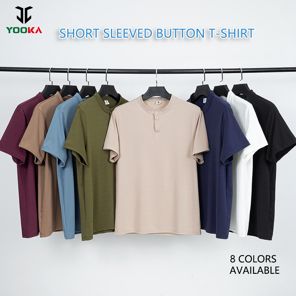 YOOKA Men's Shirt Men's Short Sleeve Henley T-SHIRT Button-up T-shirt Tees Solid Color Men's Short Sleeve Tshirt