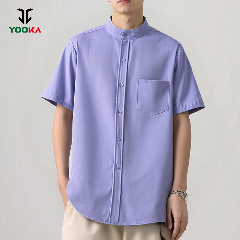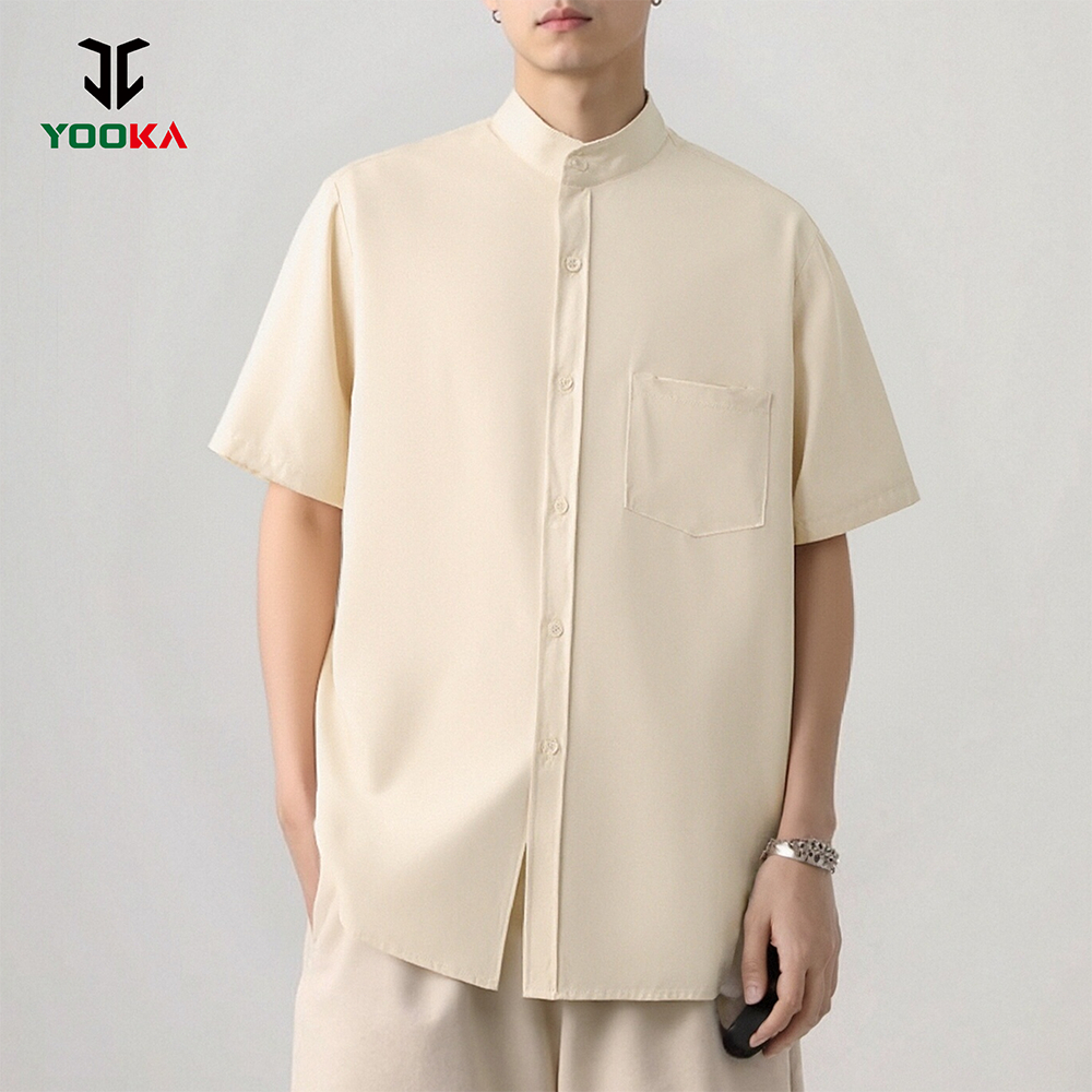 Yooka Men Casual Shirt Men's Shirt Short Sleeve Buttons Up Loose Korean Men Shirt Plain Kurta Lelaki