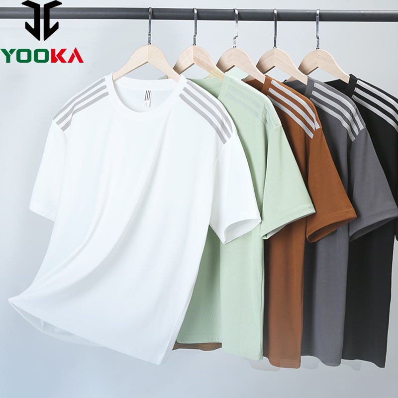 Yooka Men Casual Tshirt Summer Dry Fit Outdoors Short Sleeve Stripe Men's Short Sleeve Shirt