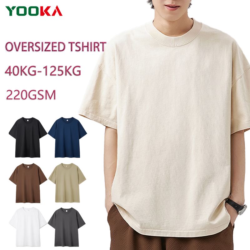 Yooka Oversized 220 GSM Cotton Round Neck T Shirt Premium Half Sleeve Unisex Plus Size Losse Tshirt